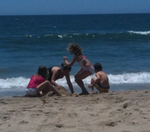 Before I begin my rant observation about being overwhelmed by technology, please allow me to express my love for the iphone camera and for allowing me to take the above photo. It was shot on a whim from whence I write this story (with a pencil and paper by the way…mostly ‘cos I’m afraid of getting sand into any computerish thing…when will they invent a sand -resistant computer anyway?). I am sitting on the warm sand at the edge of the Pacific Ocean on a calm and sunny day, listening to the warbling aqua-marine waves and the free-flowing laughter of my children and their friends building a sandcastle.