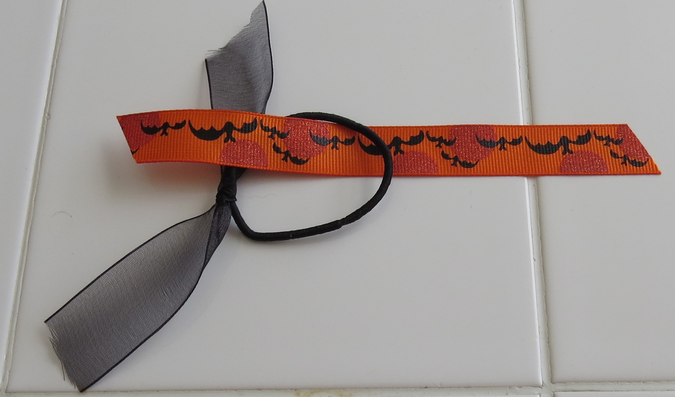 Tie the ribbons to the elastic hair band.
